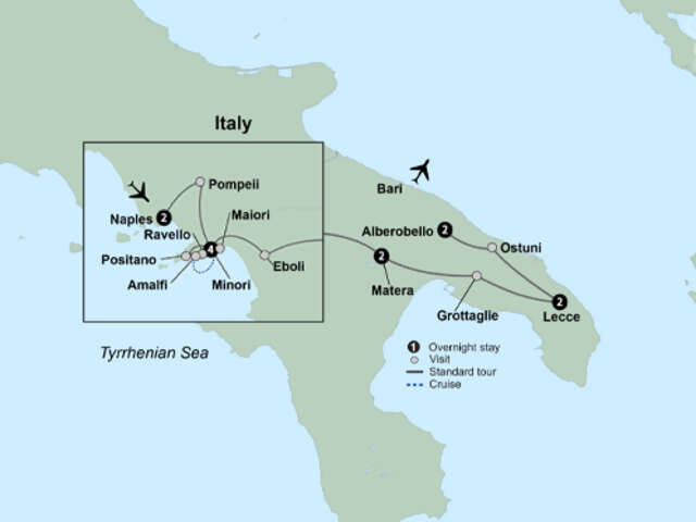 In a country of renowned cuisine, iconic coastlines, and ancient roots, stray off the beaten path and explore a new side of the Italy you know and love. Make your way through southern Italy and experience the Amalfi Coast and the Puglia region.