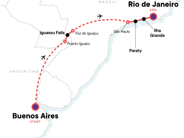 Your Discover Moment: Ilha Grande. Iguassu Falls visit (Brazil and Argentina). Internal flights. All transport between destinations and to/from included activities.